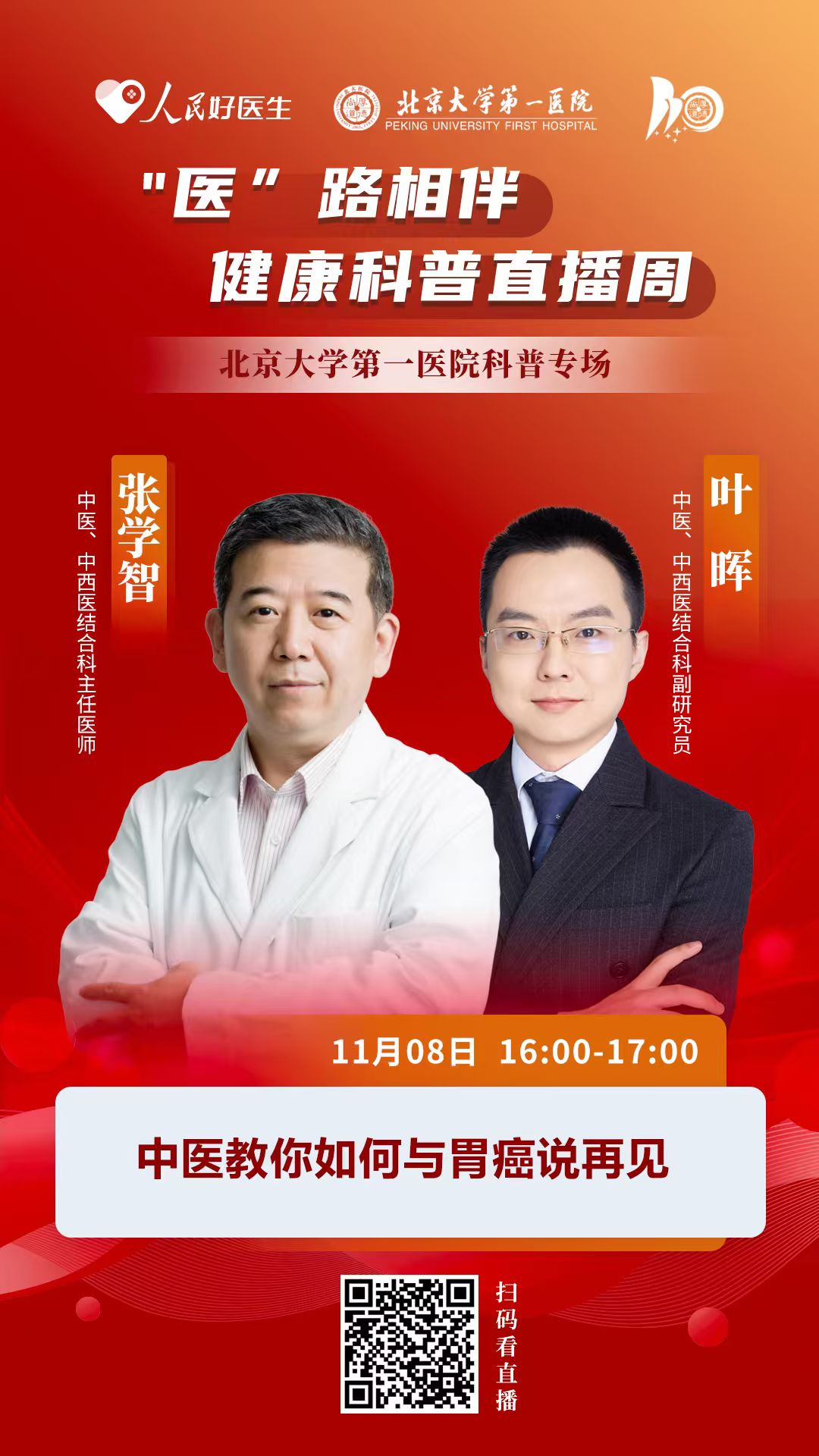 为了深入了解这一疾病,“人民好医生”主持人董政与北大医院中医、中西医结合科主任张学智及中医、中西医结合科副主任、支部书记叶晖一起“聊”“中医教你如何与胃癌说再见”。